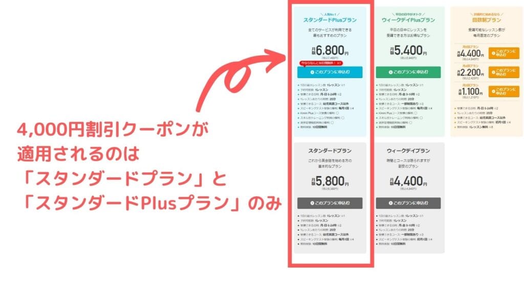 月額6,800円で毎日1レッスン受講できる「スタンダードPlusプラン」が一番人気です。