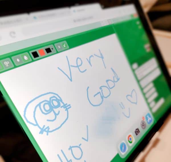 わが家は講師が入室してくるまで、もう一度予習動画を見たり、画面左側に自由にお絵描きできるので絵を描いたりして待っています。