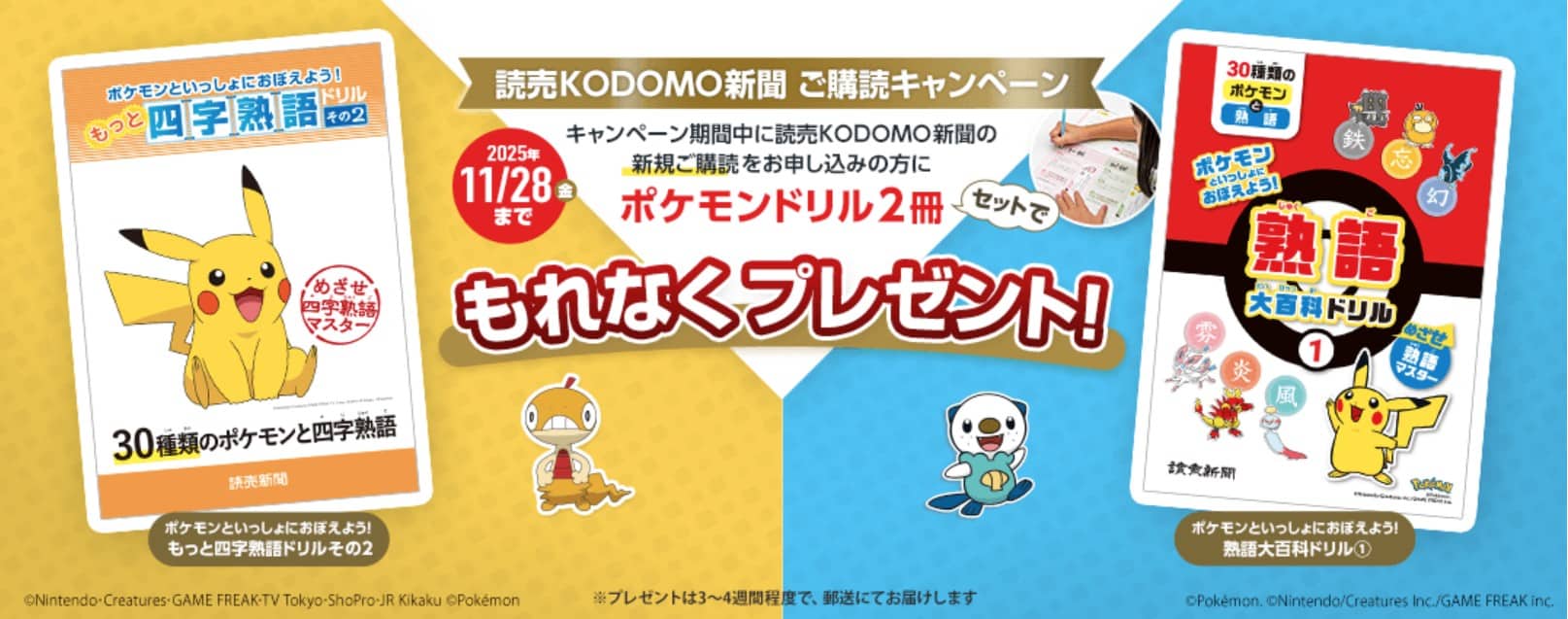 ポケモンドリルが2冊もらえます