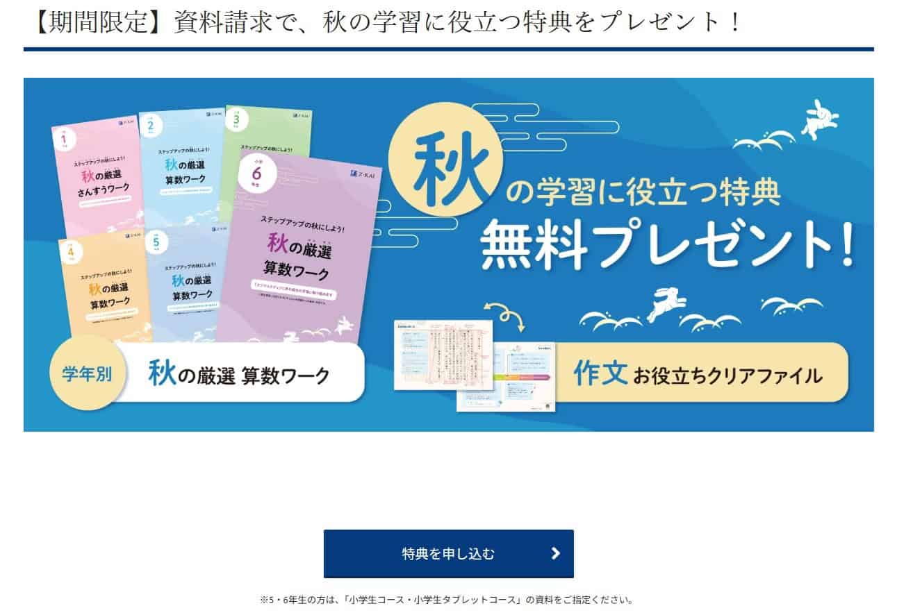算数ワーク以外にも、Z会のおためし教材ももらえます!